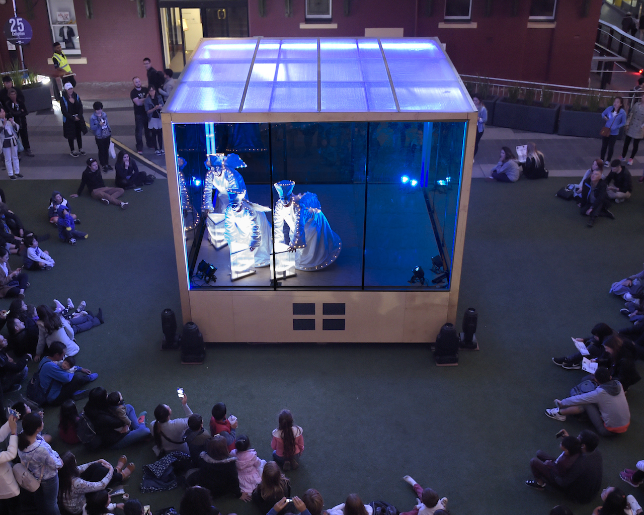 Born in a Taxi is an award winning physical theatre ensemble, internationally recognised for creating spectacular participatory and interactive events at festivals and events for people of all ages, and in their own iconic touring venue, THE CUBE.