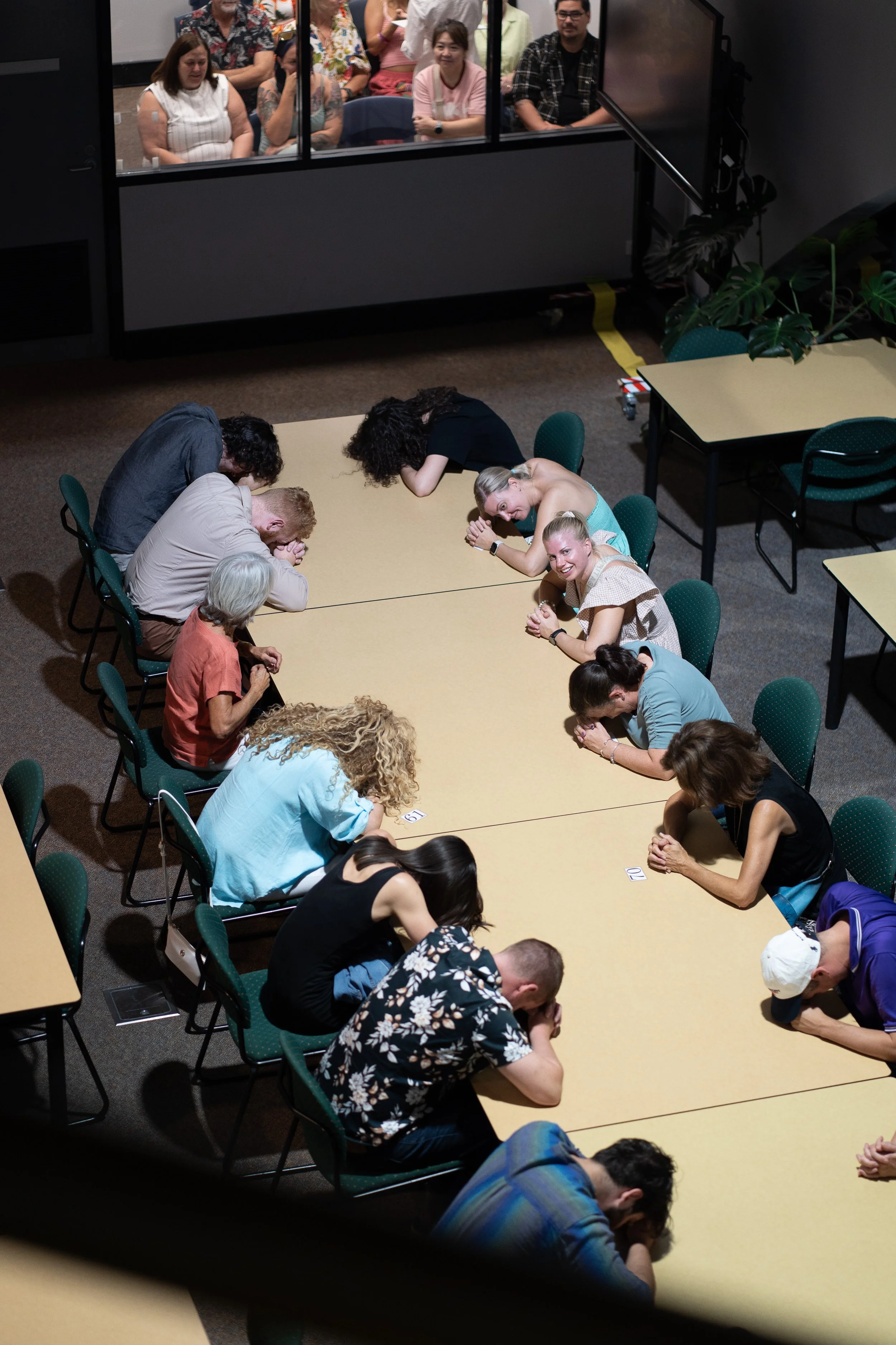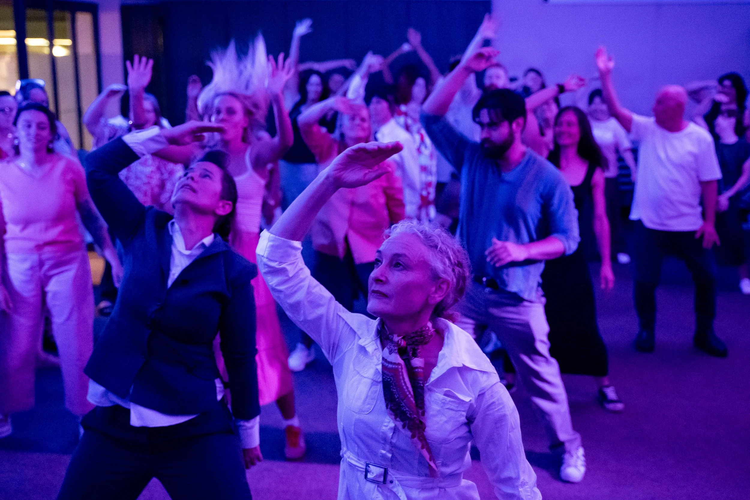 As the ensemble test social norms within the waiting spaces, the distinction between performer, audience and public becomes blurred. Unpredictable encounters between us become playful collective actions. WAITING ROOM is like a disco of humanity.